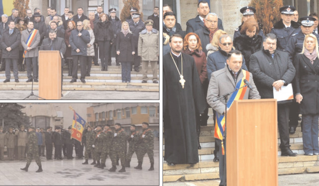 In ciuda vremii capricioase, în Piaţa Tricolorului din municipiul Târgovişte, au avut loc o serie de evenimente prilejuite de împlinirea a 160 de ani de la Unirea Principatelor Române, act istoric ce a pus piatra de temelie a statului român modern. Festivităţile au debutat cu primirea onorului de către prefectul judeţului, trecerea în revistă a gărzii de onoare şi salutul gărzii de onoare de către prefect. Au fost rostite alocuţiuni privind semnificaţia zilei de către istoricul, prof. univ. dr. Silviu Miloiu, pr. lonuţ Ghibanu, vicar eparhial al Arhiepiscopiei Târgovişte, prefectul judeţului, Antonel Jîjîie, preşedintele CJ, Daniel Comănescu şi primarul municipiului Târgovişte, Cristian Stan.