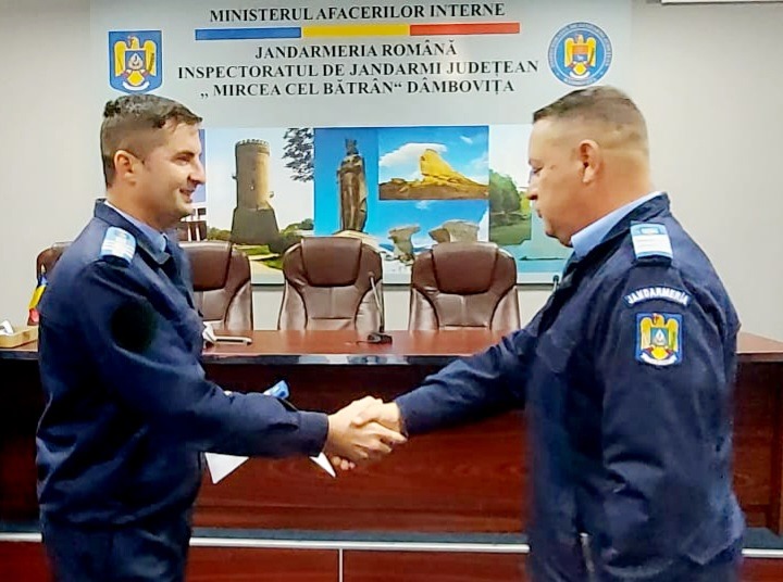 Astfel, 2 ofiţeri şi 20 de subofiţeri au primit o tresă în plus pe epoleţi, într-un cadru festiv de la colonel Matei Mihai, împuternicit inspector șef, care le-a înmânat noile grade, i-a felicitat pentru efortul depus în îndeplinirea cu succes a misiunilor încredințate şi le-a cerut să se implice activ în muncă pentru desfăşurarea în condiţii optime a tuturor activităților.