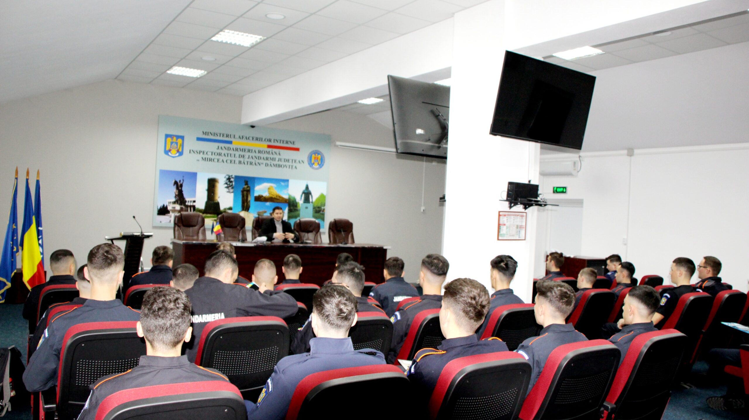 Stagiul de practică la Inspectoratul de Jandarmi Județean Dâmbovița, care se va desfășura până pe 30 august a.c. Aceștia au fost primiți de conducerea inspectoratului, care le-a prezentat principalele aspecte legate de specificul unității și misiunile desfășurate de jandarmii dâmbovițeni în zona de competență teritorială.