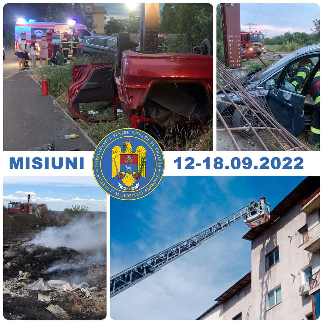 Săptămâna trecută a fost una de foc pentru pompierii dâmbovițeni.Au intervenit la: 205 cazuri medicale,13 incendii la gospodăriile populaţiei (locuinţe, anexe gospodăreşti etc.), 5 acţiuni la accidente rutiere, 20 acţiuni pentru asistența persoanelor aflate în dificultate,27 acţiuni la alte situaţii de urgenţă.