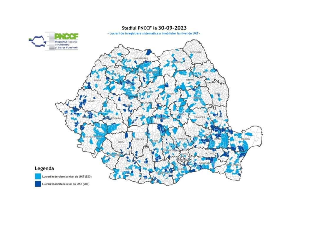 Potrivit  datelor  ANCPI, 200 de UAT-uri sunt cadastrate integral, din care 79 cu fonduri europene.