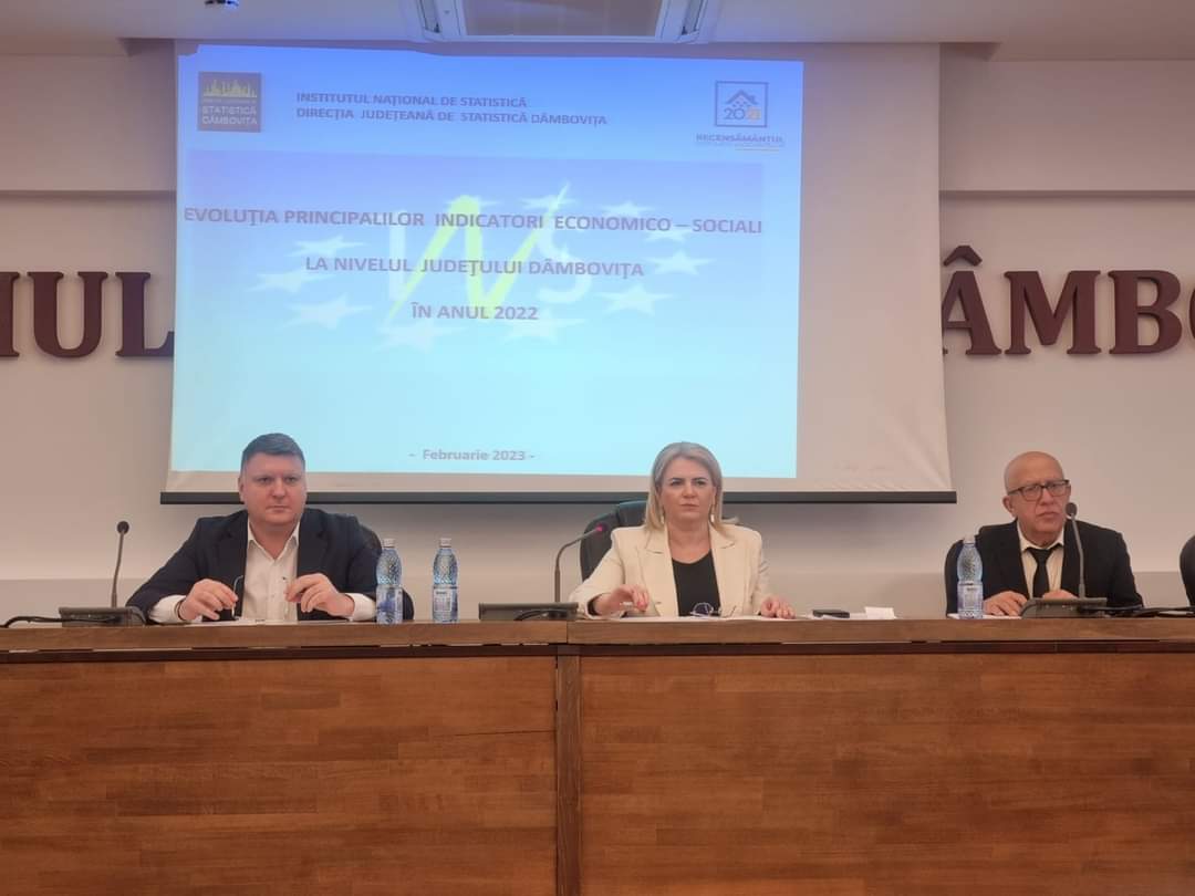 La punctul al doilea de pe ordinea de zi a fost prezentată evoluția principalilor indicatori economico-sociali la nivelul județului Dâmbovița în anul 2022, iar la punctele 3 și 4 de pe ordinea de zi au fost expuși principalii indicatori aferenți județului Dâmbovița rezultați din Recensământul General Agricol 2020, respectiv, principalii indicatori aferenți județului Dâmbovița rezultați din Recensământul Populației și Locuințelor 2021 (date provizorii).