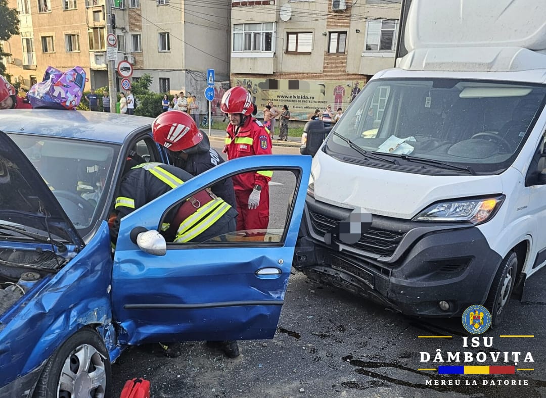 Un accident rutier a avut loc în municipiul Târgoviște.Trei persoane au fost rănite și transportate la spital.