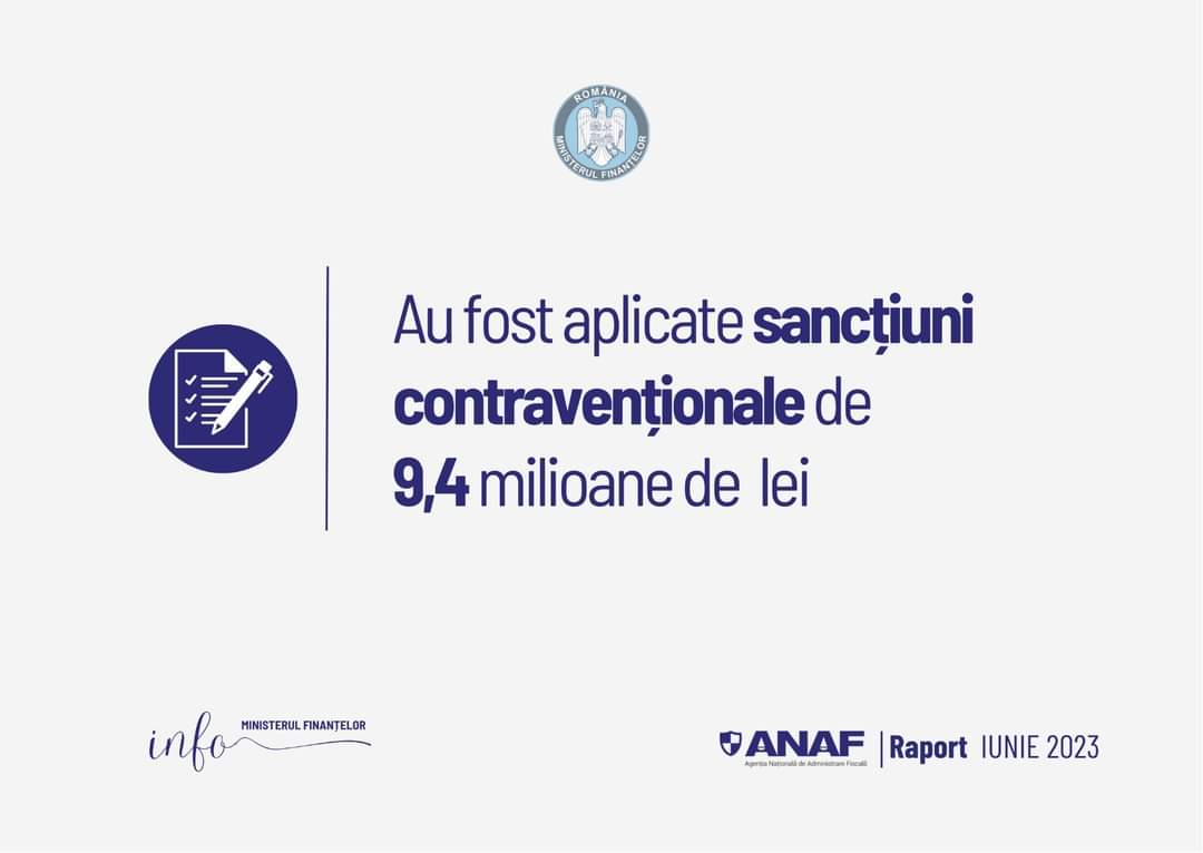 În contextul prevenirii evaziunii fiscale, în luna iunie 2023, au fost efectuate acțiuni de control operativ în cadrul cărora au fost aplicate sancțiuni contravenționale în valoare de 9.470.199 lei.