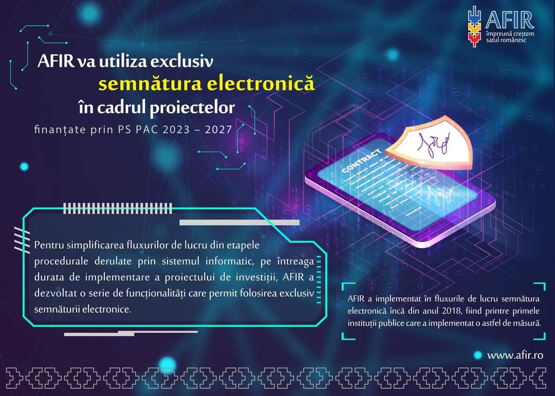 AFIR va utiliza exclusiv semnătură electronică pentru accesarea fondurilor europene și pentru implementarea proiectelor finanțate prin PS PAC 2023 – 2027
