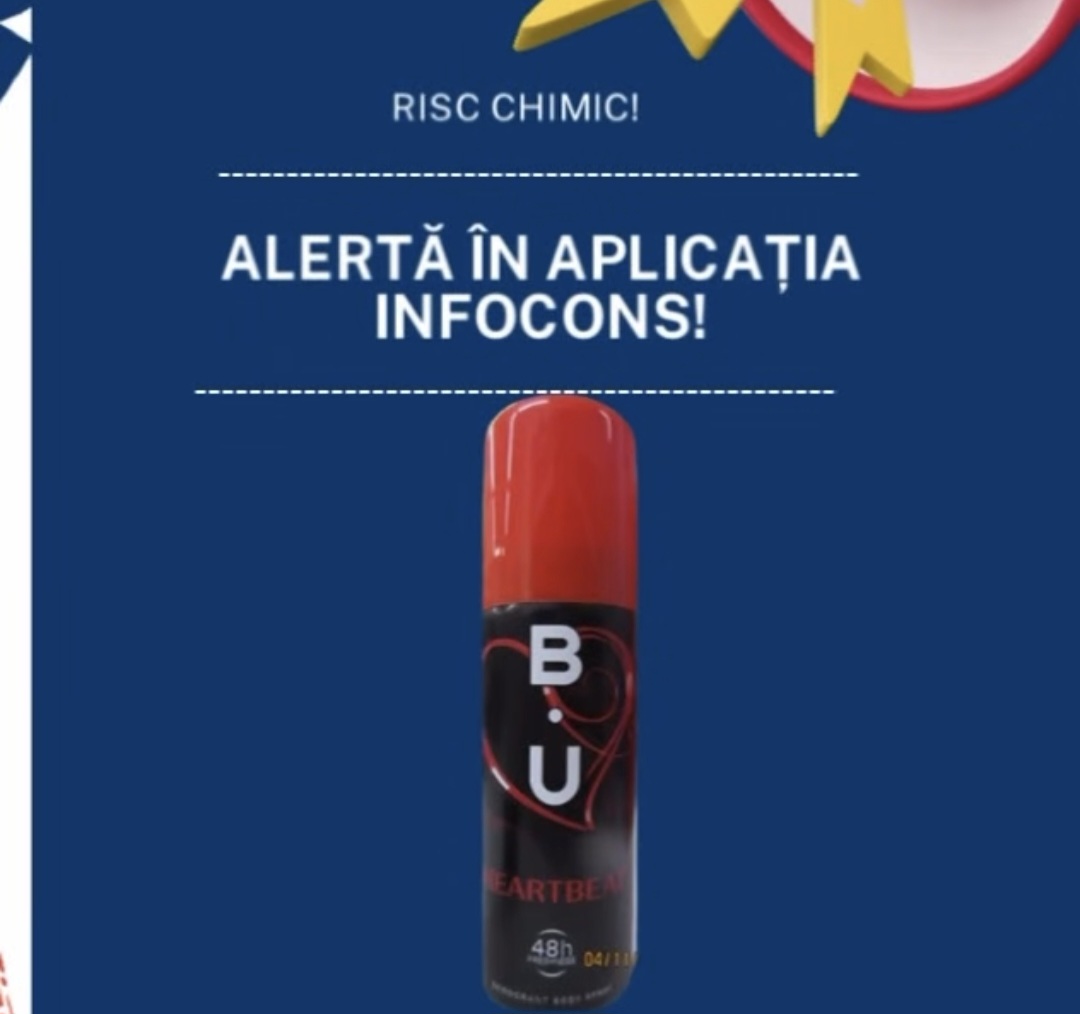 InfoCons – Protecția Consumatorului a emis o alertă privind un produs cosmetic neconform, respectiv B.U. – Deodorant, 50 ml, în care a fost identificat un risc chimic pentru sănătatea utilizatorilor.