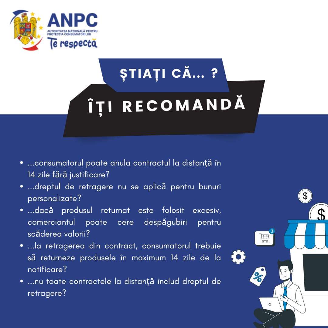 Știai că poți returna produsele achiziționate online în termen de 14 zile calendaristice, fără a fi nevoit să oferi un motiv? Conform Ordonanței de Urgență 34/2014, drepturile consumatorilor sunt protejate în fața comerțului online, iar procesul de retur este simplu și rapid!