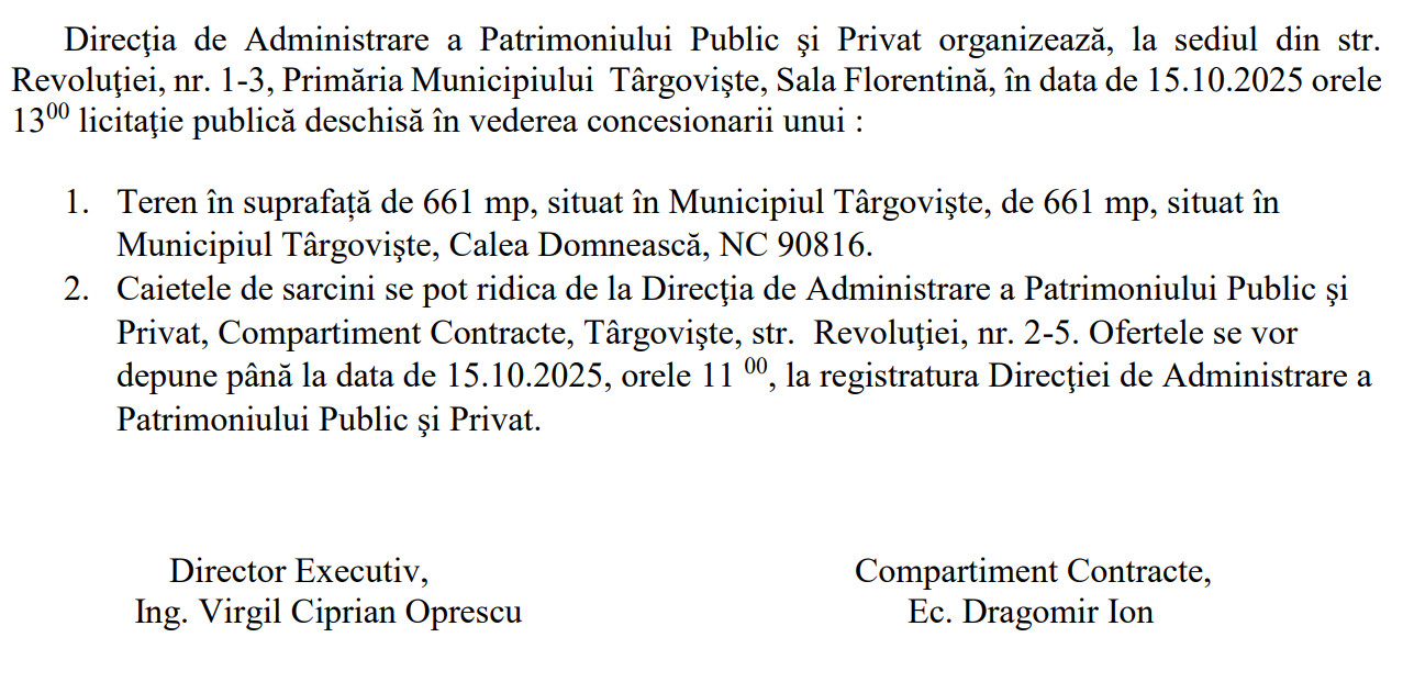ANUNȚ By: Ziarul Dambovita Date: 23/09/2025 FacebookTwitterPinterestWhatsApp Articolul precedentÎnscrieri cursuri de reînnoire a licenței UEFA B și UEFA AArticolul următorANUNȚ Ziarul Dambovita LĂSAȚI UN MESAJ Renunțați la răspuns Comentariu: Vă rugăm să introduceți comentariul dvs.! Nume:* Introduceți aici numele dvs. Email:* Ați introdus o adresă de e-mail incorectă! Vă rugăm să introduceți adresa dvs. de e-mail aici Website: Salvați numele meu, adresa de e-mail și site-ul web în acest browser pentru data viitoare i comentariu. Popular Eisberg, un reper privind securitatea alimentară a salatelor gata de consum Plafonarea adaosului la alimente, când inflaţia sare de 5% Atenție la bijuterii periculoase! Colierul cu pandantiv fluture vândut online, prezintă riscuri chimice serioase Autoritățile au decis să elimine pagurile impuse laboratoarelor private, astfel încât românii să-și poată face investigații decontate oricând au nevoie, nu doar în primele... Ziua Internațională a Nonviolenței în Școală la Târgoviște ȘtiriDâmbovița ANUNȚ Ziarul Dambovita - 30/01/2026 Municipiul Moreni cu sediul în strada Alexandru Ioan Cuza,... ANUNȚ Ziarul Dambovita - 30/01/2026 Municipiul Moreni cu sediul în strada Alexandru Ioan Cuza,... ANUNȚ Ziarul Dambovita - 30/01/2026 Municipiul Moreni cu sediul în strada Alexandru Ioan Cuza,... ANUNȚ Ziarul Dambovita - 30/01/2026 Municipiul Moreni cu sediul în strada Alexandru Ioan Cuza,...