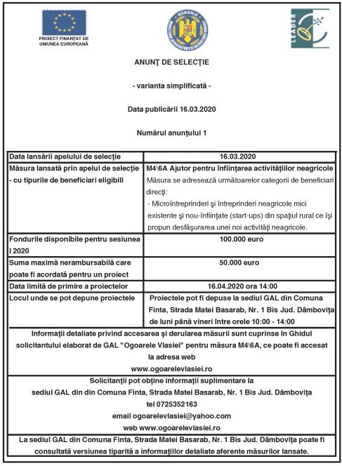 Home»ANUNŢURI»ANUNŢ DE SELECŢIE