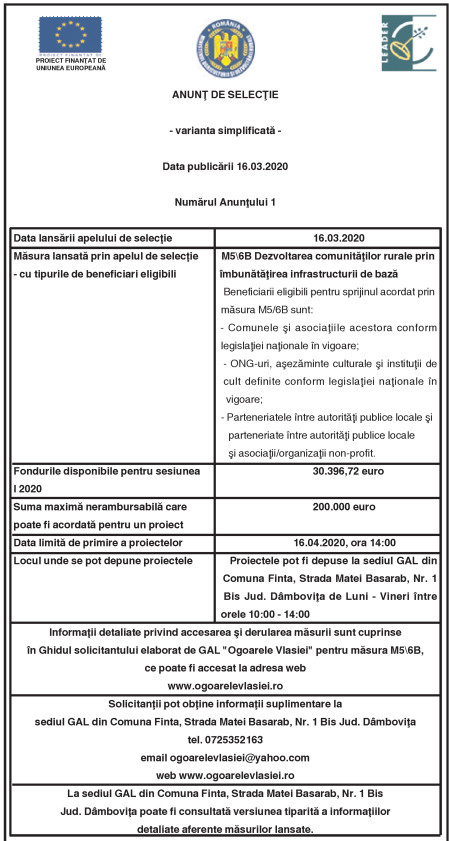 ANUNŢ DE SELECŢIE