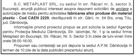 ANUNŢ PUBLIC By: Ziarul Dambovita Date: 19/02/2019 FacebookTwitterPinterestWhatsApp ANUNŢ PUBLIC TagsANUNȚ PUBLIC Articolul precedentANUNŢ Consiliul Baroului Dâmboviţa convoacă în data de 16.03.2019 orele 9.30Articolul următorPeste 40 de intervenţii ale pompierilor dâmboviţeni în ultima săptămână Ziarul Dambovita LĂSAȚI UN MESAJ Renunțați la răspuns Comentariu: Vă rugăm să introduceți comentariul dvs.! Nume:* Introduceți aici numele dvs. Email:* Ați introdus o adresă de e-mail incorectă! Vă rugăm să introduceți adresa dvs. de e-mail aici Website: Salvați numele meu, adresa de e-mail și site-ul web în acest browser pentru data viitoare i comentariu. Δ Acest site folosește Akismet pentru a reduce spamul. Află cum sunt procesate datele comentariilor tale. Popular Adrenalină și suspans la Cinema Independența din Târgoviște: „Anaconda” ajunge pe marele ecran A apărut Almanahul bisericesc 2026 al Arhiepiscopiei Târgoviștei – o oglindă a vieții pastorale și academice contemporane CJ Dâmbovița încheie o nouă ediție a programului de internship Avertisment pentru turiști: Recomandările jandarmilor montani înainte de urcarea în Bucegi Restricții de circulație în Ungaria, pe Drumul Principal 42 punct frontieră Artand-Borș, începând cu 1 ianuarie 2026! ȘtiriDâmbovița Județul Dâmbovița, sub asediul gerului – temperaturi de până la -11 grade Celsius Roxana - Ionela Botea - 02/01/2026 Dimineață geroasă – 2 ianuarie , temperaturi minime înregistrate... Vești bune pentru fermieri: începe depunerea cererilor pentru bunăstarea animalelor (DR-06) Roxana - Ionela Botea - 02/01/2026 Fermierii din sectorul zootehnic au motive de optimism la... Mani Gyenes, din nou la startul Raliului Dakar: România are reprezentant în cursa supremă a anduranței Roxana - Ionela Botea - 02/01/2026 România va fi din nou reprezentată la cel mai... Noi taxe și impozite în vigoare de la 1 ianuarie 2026 Roxana - Ionela Botea - 02/01/2026 Începând cu 1 ianuarie 2026, în România au intrat...