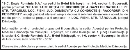 ANUNŢ PUBLIC PRIVIND DEPUNEREA SOLICITĂRII DE EMITERE A ACORDULUI DE MEDIU By: Ziarul Dambovita Date: 23/04/2019 FacebookTwitterPinterestWhatsApp ANUNŢ PUBLIC PRIVIND DEPUNEREA SOLICITĂRII DE EMITERE A ACORDULUI DE MEDIU TagsAnunţ public privind depunerea solicitării de emitere a acordului de mediu Articolul precedent„Să ne protejăm împreună, Vaccinurile sunt benefice”Articolul următorSC METAPLAST SRL Ziarul Dambovita LĂSAȚI UN MESAJ Renunțați la răspuns Comentariu: Vă rugăm să introduceți comentariul dvs.! Nume:* Introduceți aici numele dvs. Email:* Ați introdus o adresă de e-mail incorectă! Vă rugăm să introduceți adresa dvs. de e-mail aici Website: Salvați numele meu, adresa de e-mail și site-ul web în acest browser pentru data viitoare i comentariu. Δ Acest site folosește Akismet pentru a reduce spamul. Află cum sunt procesate datele comentariilor tale. Popular Adrenalină și suspans la Cinema Independența din Târgoviște: „Anaconda” ajunge pe marele ecran A apărut Almanahul bisericesc 2026 al Arhiepiscopiei Târgoviștei – o oglindă a vieții pastorale și academice contemporane CJ Dâmbovița încheie o nouă ediție a programului de internship Avertisment pentru turiști: Recomandările jandarmilor montani înainte de urcarea în Bucegi Restricții de circulație în Ungaria, pe Drumul Principal 42 punct frontieră Artand-Borș, începând cu 1 ianuarie 2026! ȘtiriDâmbovița Județul Dâmbovița, sub asediul gerului – temperaturi de până la -11 grade Celsius Roxana - Ionela Botea - 02/01/2026 Dimineață geroasă – 2 ianuarie , temperaturi minime înregistrate... Vești bune pentru fermieri: începe depunerea cererilor pentru bunăstarea animalelor (DR-06) Roxana - Ionela Botea - 02/01/2026 Fermierii din sectorul zootehnic au motive de optimism la... Mani Gyenes, din nou la startul Raliului Dakar: România are reprezentant în cursa supremă a anduranței Roxana - Ionela Botea - 02/01/2026 România va fi din nou reprezentată la cel mai... Noi taxe și impozite în vigoare de la 1 ianuarie 2026 Roxana - Ionela Botea - 02/01/2026 Începând cu 1 ianuarie 2026, în România au intrat...