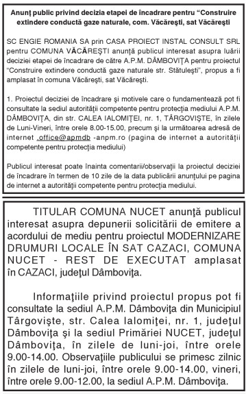 ANUNŢURI By: Ziarul Dambovita Date: 21/08/2020 FacebookTwitterPinterestWhatsApp ANUNŢURI Articolul precedentCSM TÂRGOVIŞTE ŞI-A AFLAT POSIBILELE ADVERSARE DIN CUPA ROMÂNIEIArticolul următorVânzările de valută au ţinut cursul euro sub 4,84 lei Ziarul Dambovita LĂSAȚI UN MESAJ Renunțați la răspuns Comentariu: Vă rugăm să introduceți comentariul dvs.! Nume:* Introduceți aici numele dvs. Email:* Ați introdus o adresă de e-mail incorectă! Vă rugăm să introduceți adresa dvs. de e-mail aici Website: Salvați numele meu, adresa de e-mail și site-ul web în acest browser pentru data viitoare i comentariu. Popular Activitate educativ-duhovnicească dedicată Sfinților Trei Ierarhi, la Bucșani Eisberg, un reper privind securitatea alimentară a salatelor gata de consum Plafonarea adaosului la alimente, când inflaţia sare de 5% Atenție la bijuterii periculoase! Colierul cu pandantiv fluture vândut online, prezintă riscuri chimice serioase Autoritățile au decis să elimine pagurile impuse laboratoarelor private, astfel încât românii să-și poată face investigații decontate oricând au nevoie, nu doar în primele... ȘtiriDâmbovița Chindia Târgoviște joacă acasă!Meci cu ARO Muscelul Câmpulung Muscel, intrare liberă pentru suporteri Roxana - Ionela Botea - 30/01/2026 Vești excelente pentru iubitorii fotbalului din Târgoviște! Chindia Târgoviște... Activitate educativ-duhovnicească dedicată Sfinților Trei Ierarhi, la Bucșani Roxana - Ionela Botea - 30/01/2026 Elevii Școlii Gimnaziale „Dora Dalles” au descoperit valorile prieteniei... Rata șomajului în România: 3,29% la finalul lunii decembrie 2025 Roxana - Ionela Botea - 30/01/2026 Peste 263.000 de persoane, înregistrate ca șomeri la nivel... Școala Gimnazială „Tudor Vladimirescu” din Târgoviște se redeschide luna viitoare Roxana - Ionela Botea - 30/01/2026 Condiții moderne și sigure pentru elevi. Primarul municipiului Târgoviște a...