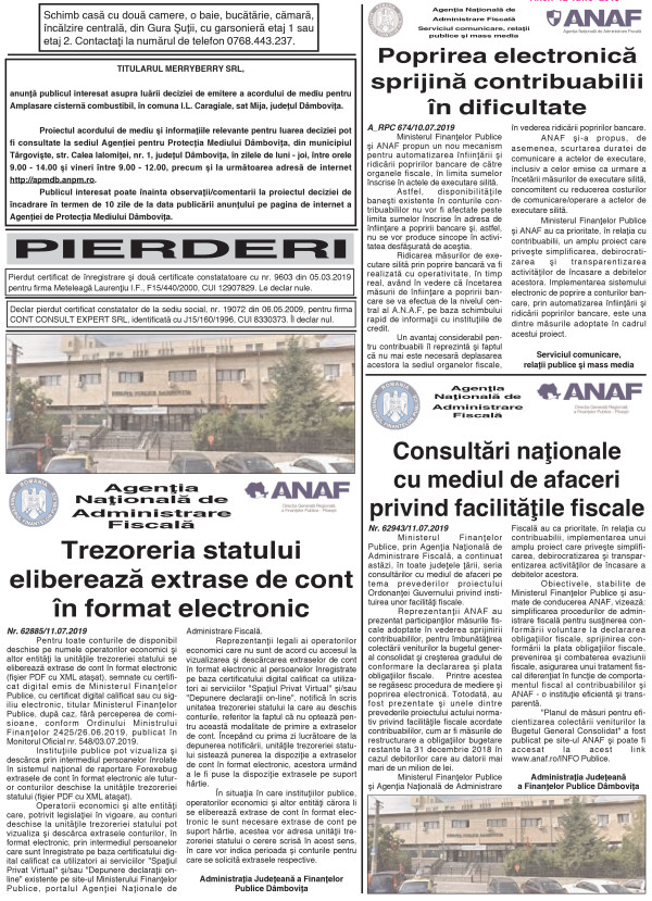 ANUNŢURI By: Ziarul Dambovita Date: 12/07/2019 FacebookTwitterPinterestWhatsApp ANUNŢURI TagsAnunţuri Articolul precedentMARIA CIOCLEA CONCUREAZA ÎN TURCIAArticolul următorPrevenirea incendiilor pe timpul campaniei agricole de vară Ziarul Dambovita LĂSAȚI UN MESAJ Renunțați la răspuns Comentariu: Vă rugăm să introduceți comentariul dvs.! Nume:* Introduceți aici numele dvs. Email:* Ați introdus o adresă de e-mail incorectă! Vă rugăm să introduceți adresa dvs. de e-mail aici Website: Salvați numele meu, adresa de e-mail și site-ul web în acest browser pentru data viitoare i comentariu. Popular Transport ilegal de material lemnos, descoperit de polițiști în Braniștea Activitate educativ-duhovnicească dedicată Sfinților Trei Ierarhi, la Bucșani Eisberg, un reper privind securitatea alimentară a salatelor gata de consum Plafonarea adaosului la alimente, când inflaţia sare de 5% Atenție la bijuterii periculoase! Colierul cu pandantiv fluture vândut online, prezintă riscuri chimice serioase ȘtiriDâmbovița Atenție, nou val de fraude financiare online Roxana - Ionela Botea - 30/01/2026 Autoritățile atrag atenția asupra unei campanii de fraudă online... Transport ilegal de material lemnos, descoperit de polițiști în Braniștea Roxana - Ionela Botea - 30/01/2026 Polițiștii din cadrul Poliției Orașului Titu au identificat un... AJF Dâmbovița dă startul înscrierilor pentru un nou curs de formare arbitri Roxana - Ionela Botea - 30/01/2026 „Intră în joc!” Asociația Județeană de Fotbal Dâmbovița a anunțat... Chindia Târgoviște joacă acasă!Meci cu ARO Muscelul Câmpulung Muscel, intrare liberă pentru suporteri Roxana - Ionela Botea - 30/01/2026 Vești excelente pentru iubitorii fotbalului din Târgoviște! Chindia Târgoviște...