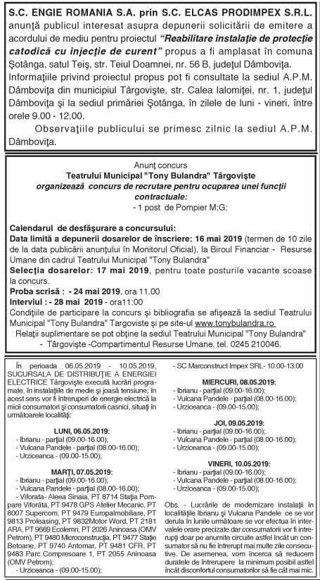 ANUNŢURI By: Ziarul Dambovita Date: 02/05/2019 FacebookTwitterPinterestWhatsApp ANUNŢURI TagsAnunţuri Articolul precedentFLACĂRA ÎŞI CONTINUĂ SERIA EXCELENTĂ. FC HERMANNSTADT – FLACĂRA MORENI 1-3 (0-1)Articolul următorCea mai rea dintre toate lumile posibile(70) De la explozia urbana la Bidonville-ul Global Ziarul Dambovita LĂSAȚI UN MESAJ Renunțați la răspuns Comentariu: Vă rugăm să introduceți comentariul dvs.! Nume:* Introduceți aici numele dvs. Email:* Ați introdus o adresă de e-mail incorectă! Vă rugăm să introduceți adresa dvs. de e-mail aici Website: Salvați numele meu, adresa de e-mail și site-ul web în acest browser pentru data viitoare i comentariu. Popular Transport ilegal de material lemnos, descoperit de polițiști în Braniștea Activitate educativ-duhovnicească dedicată Sfinților Trei Ierarhi, la Bucșani Eisberg, un reper privind securitatea alimentară a salatelor gata de consum Plafonarea adaosului la alimente, când inflaţia sare de 5% Atenție la bijuterii periculoase! Colierul cu pandantiv fluture vândut online, prezintă riscuri chimice serioase ȘtiriDâmbovița Atenție, nou val de fraude financiare online Roxana - Ionela Botea - 30/01/2026 Autoritățile atrag atenția asupra unei campanii de fraudă online... Transport ilegal de material lemnos, descoperit de polițiști în Braniștea Roxana - Ionela Botea - 30/01/2026 Polițiștii din cadrul Poliției Orașului Titu au identificat un... AJF Dâmbovița dă startul înscrierilor pentru un nou curs de formare arbitri Roxana - Ionela Botea - 30/01/2026 „Intră în joc!” Asociația Județeană de Fotbal Dâmbovița a anunțat... Chindia Târgoviște joacă acasă!Meci cu ARO Muscelul Câmpulung Muscel, intrare liberă pentru suporteri Roxana - Ionela Botea - 30/01/2026 Vești excelente pentru iubitorii fotbalului din Târgoviște! Chindia Târgoviște...