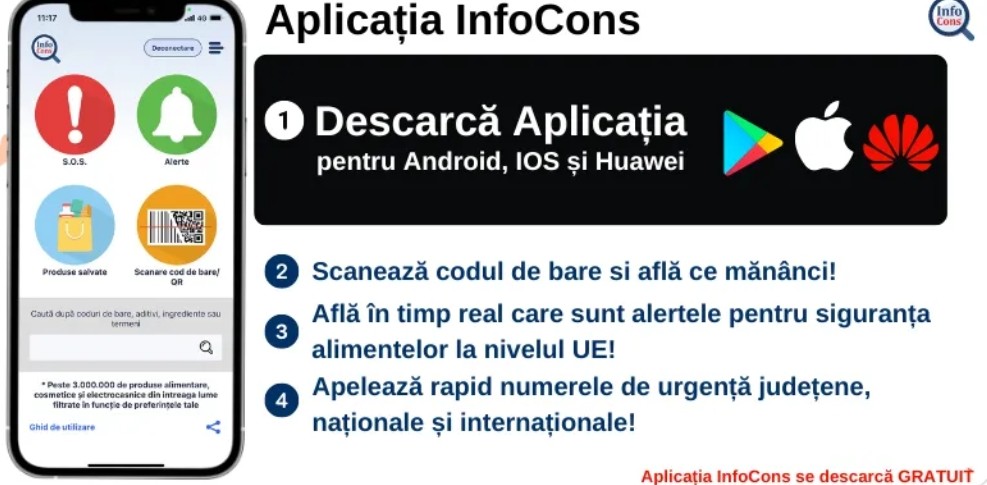 Descarcă Aplicația InfoCons și scanează codul QR de pe etichetele energetice ale produselor electronice și electrocasnice ! Estimează costul aferent consumului de energie cu funcția calculator din aplicație .