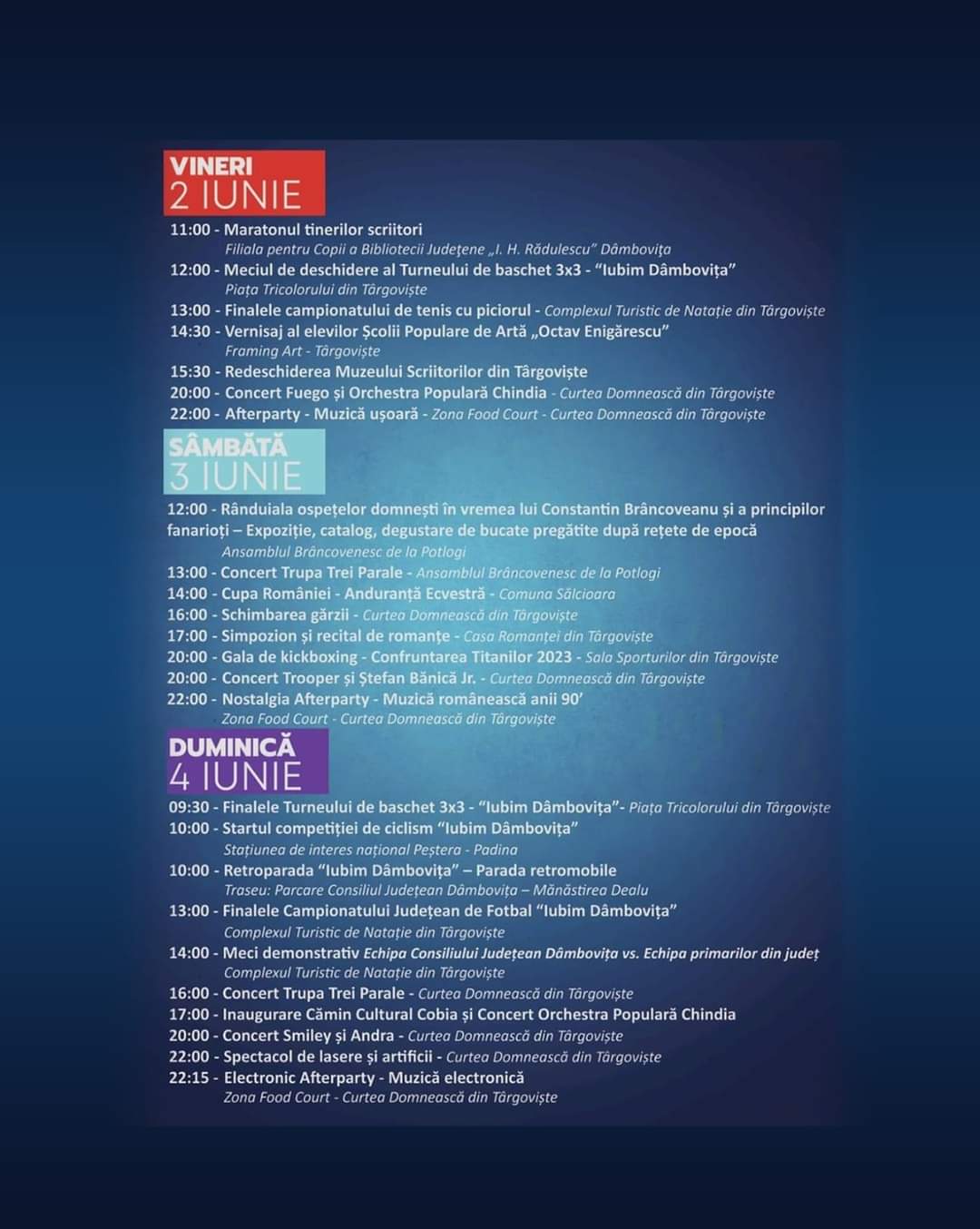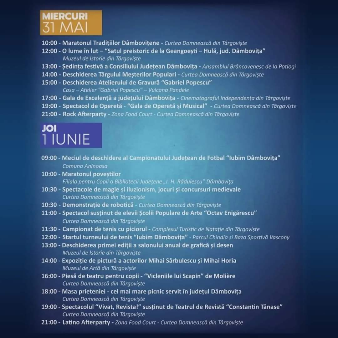Președintele CJ Dâmbovița, Corneliu Ștefan îi invită pe toți cetățenii județului, în perioada 31-4 mai să se bucure de o serie de manifestări cultural-artistice.
