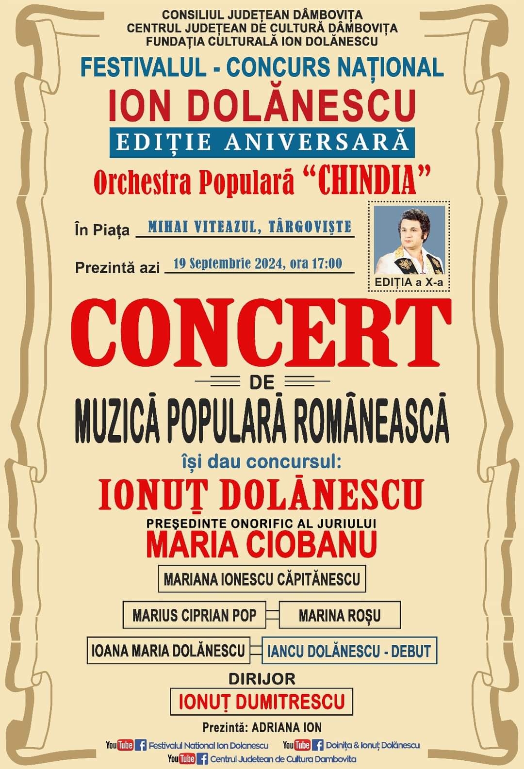 Cu doar câteva ore înainte de debutul celei de-a X-a ediții a Festivalului-Concurs Național „Ion Dolănescu”, entuziasmul crește printre iubitorii muzicii populare din România. Evenimentul va avea loc în zilele de 19 și 20 septembrie, începând cu ora 17:00, în Piața Mihai Viteazul din Târgoviște. Accesul este liber, oferind tuturor oportunitatea de a se bucura de talentul și pasiunea artiștilor care vor urca pe scenă.