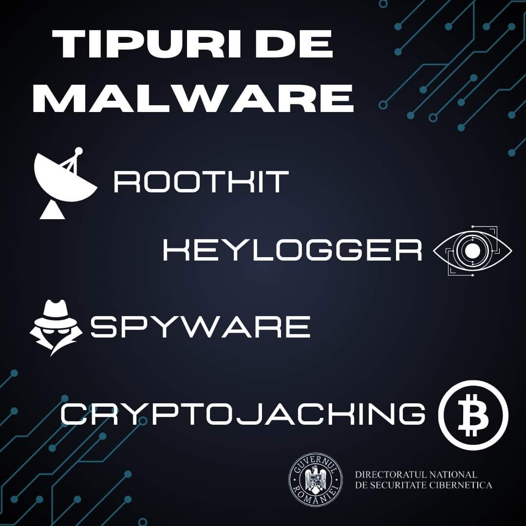 Spyware – o categorie de malware care monitorizează și colectează datele utilizatorilor, trimițându-le ulterior către atacatori fără permisiune. Datele extrase pot fi vândute ulterior în comunități de hackeri.