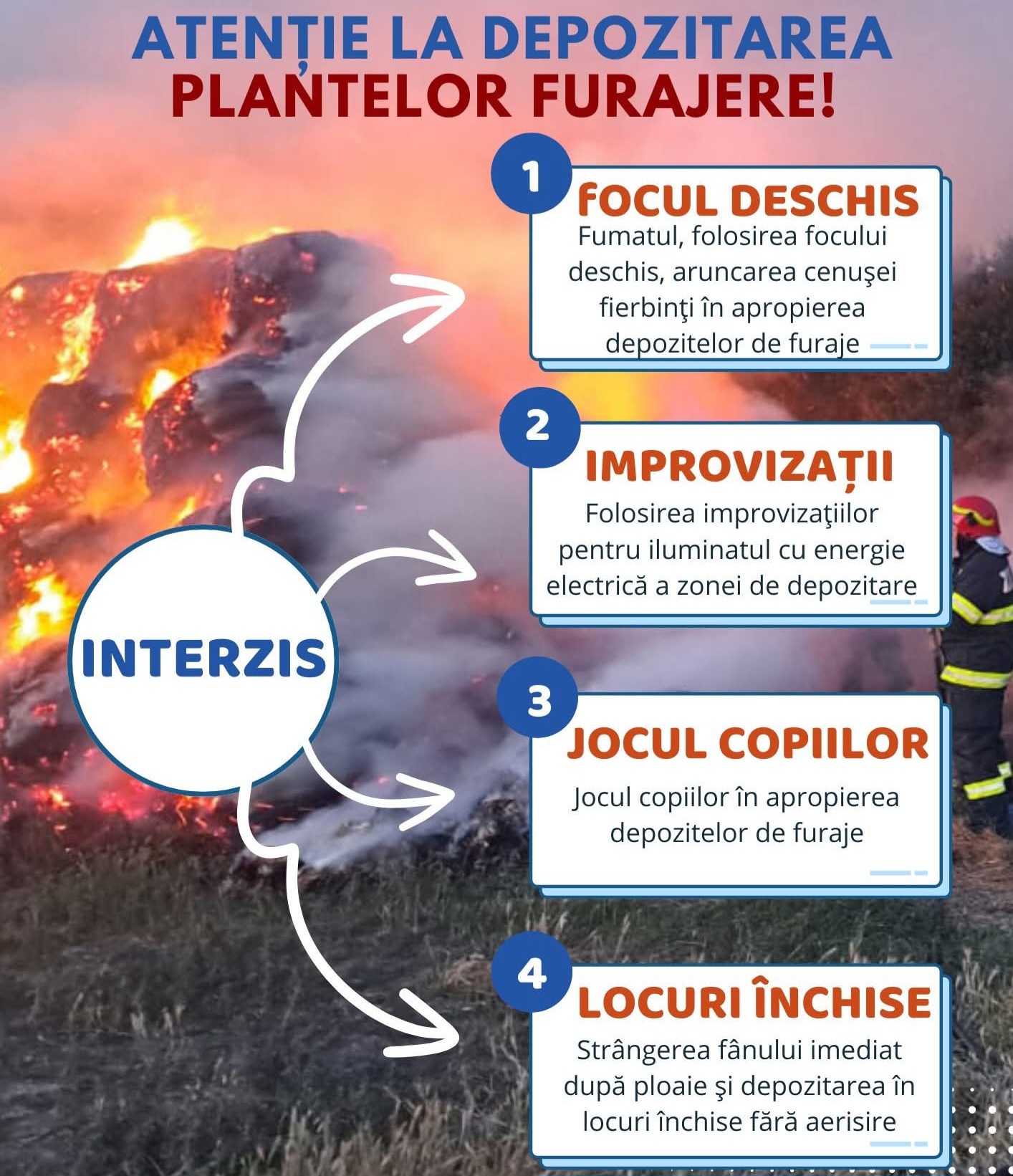Cetățenii sunt îndemnați să anunțe imediat serviciile de urgență la primul semn de fum sau foc și să manifeste responsabilitate maximă pentru a preveni producerea unor incendii devastatoare.