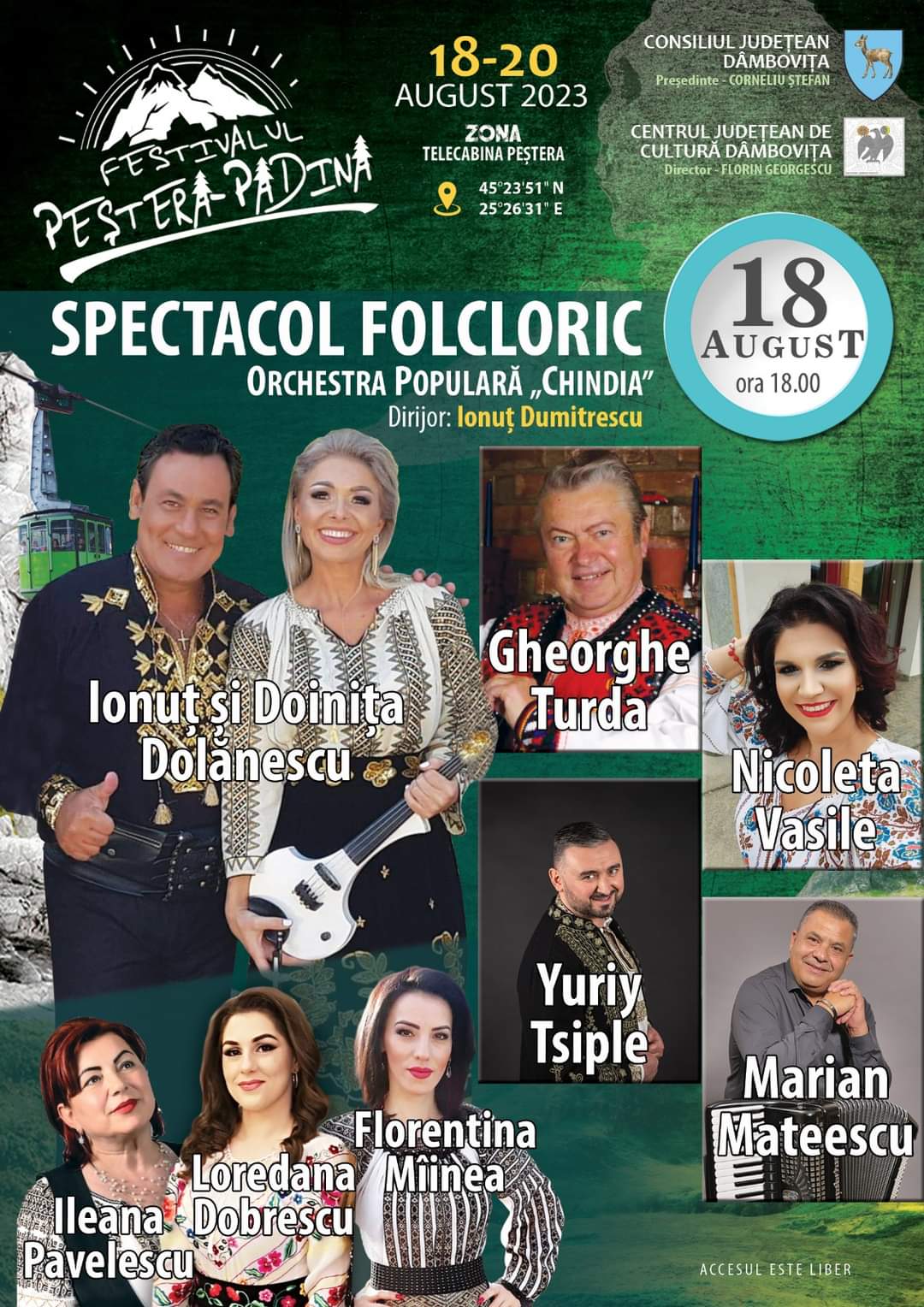 Așadar, vineri, 18 august, de la ora 18:00, CJ Dâmboviţa vă așteaptă la prima seară a ediției anului 2023 a Festivalului Peștera-Padina.