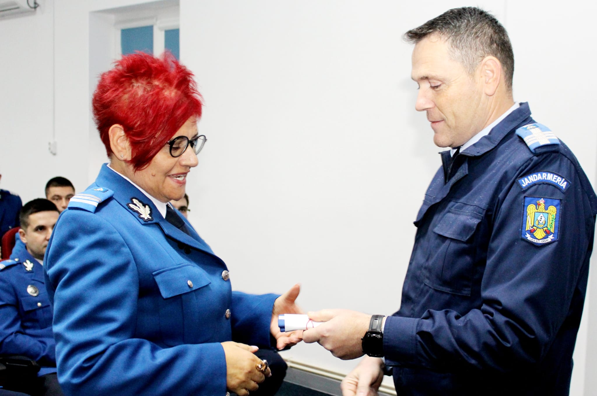 În contextul celebrării Zilei Naționale a României, 11 jandarmi dâmbovițeni, care s-au evidențiat prin modul de îndeplinire a atribuţiilor de serviciu, au fost înaintați în gradul militar următor, înaintea expirării stagiului minim în grad, într-un cadru festiv la sediul Jandarmeriei Dâmbovița.