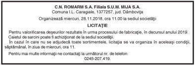 Home»ANUNŢURI»C.N. ROMARM S.A. Filiala S.U.M. MIJA S.A.