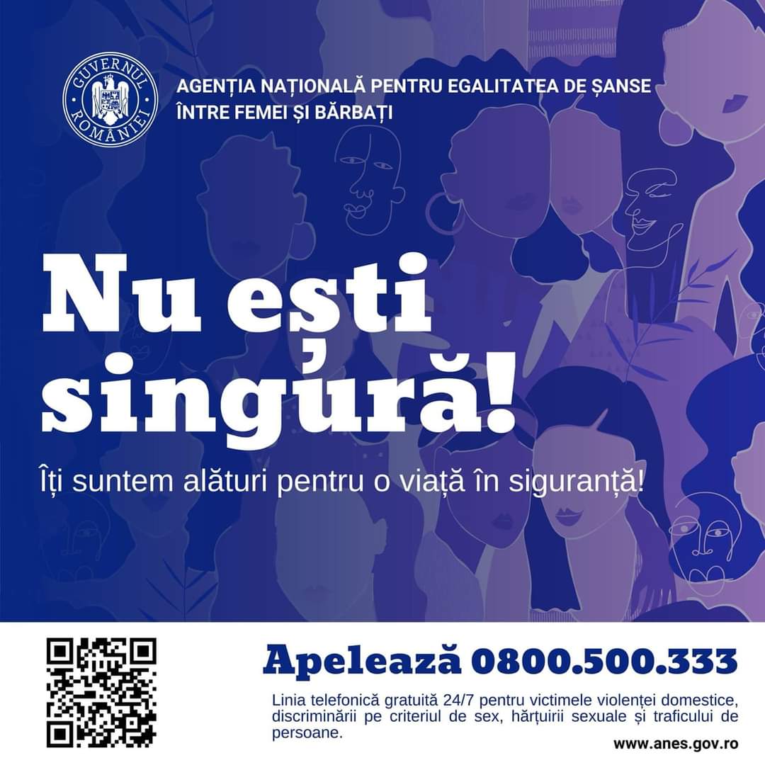 În perioada 25 noiembrie – 10 decembrie, lumea întreagă marchează 16 zile de activism împotriva violenței asupra femeilor, o perioadă dedicată conștientizării și acțiunii împotriva abuzurilor de gen. În acest context, Agenția Națională pentru Egalitatea de Șanse între Femei și Bărbați (ANES) a lansat campania „Nu ești singură! Îți suntem alături pentru o viață în siguranță!”, o inițiativă care adresează direct victimele violenței domestice și le transmite un mesaj puternic de sprijin și solidaritate.