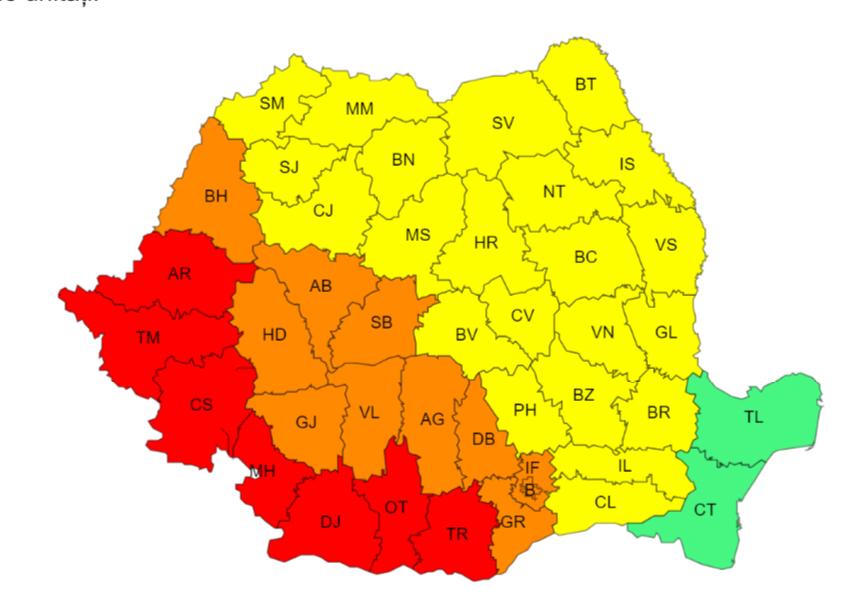 În județul Dâmbovița va fi caniculă și disconfort termic, iar indicele temperatură-umezeală (ITU) va depăși ușor pragul critic de 80 de unități. Temperaturile maxime vor fi în general de 38…39 de grade, iar minimele de 21…22 de grade,