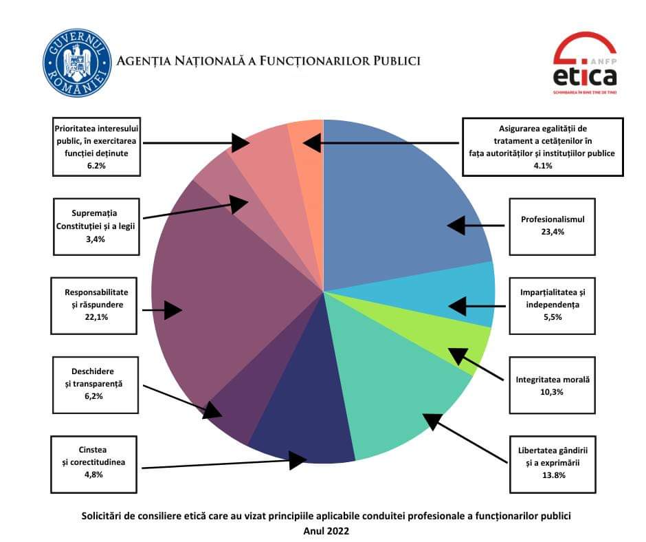 ele mai multe solicitări de consiliere etică în anul 2022 au vizat principiile aplicabile conduitei profesionale a funcționarilor publici.