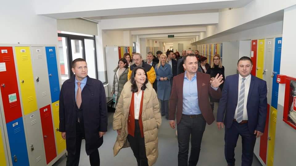 Prima oprire a avut loc la Școala Gimnazială „Matei Basarab”, unde anul acesta s-a încheiat o investiție de extindere, reabilitare, modernizare și echipare a unității de învățământ amintite, investiție în cadrul căreia valoarea finanțării europene accesate de către administrația locală targovișteană este de 22.223.977,79 lei.