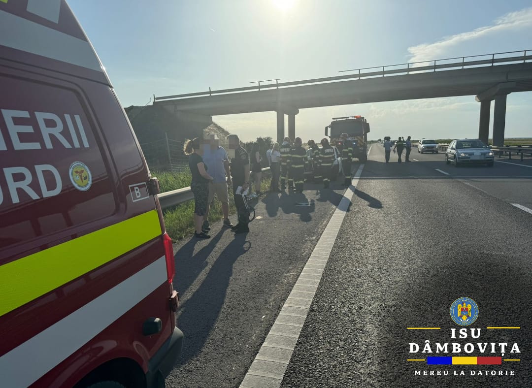 Pompierii dâmbovițeni au fost solicitați să intervină în cazul unui eveniment rutier pe autostrada A1, la kilometrul 75, în direcția către București, în localitatea dâmbovițeană Petrești.