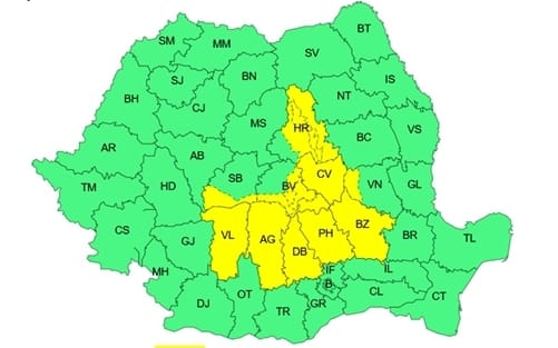 COD GALBEN în județul Dâmbovița,  vreme instabilă cu averse, vijelii și grindină