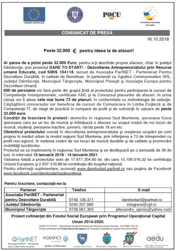 COMUNICAT DE PRESĂ By: Ziarul Dambovita Date: 16/10/2018 FacebookTwitterPinterestWhatsApp COMUNICAT DE PRESĂ TagsCOMUNICAT DE PRESĂ Articolul precedentSubscrisa CITR-Filiala Argeş SPRLArticolul următorCea mai rea dintre toate lumile posibile (13) De la explozia urbană la bidonville-ul global Ziarul Dambovita LĂSAȚI UN MESAJ Renunțați la răspuns Comentariu: Vă rugăm să introduceți comentariul dvs.! Nume:* Introduceți aici numele dvs. Email:* Ați introdus o adresă de e-mail incorectă! Vă rugăm să introduceți adresa dvs. de e-mail aici Website: Salvați numele meu, adresa de e-mail și site-ul web în acest browser pentru data viitoare i comentariu. Δ Acest site folosește Akismet pentru a reduce spamul. Află cum sunt procesate datele comentariilor tale. Popular Adrenalină și suspans la Cinema Independența din Târgoviște: „Anaconda” ajunge pe marele ecran A apărut Almanahul bisericesc 2026 al Arhiepiscopiei Târgoviștei – o oglindă a vieții pastorale și academice contemporane CJ Dâmbovița încheie o nouă ediție a programului de internship Avertisment pentru turiști: Recomandările jandarmilor montani înainte de urcarea în Bucegi Restricții de circulație în Ungaria, pe Drumul Principal 42 punct frontieră Artand-Borș, începând cu 1 ianuarie 2026! ȘtiriDâmbovița Județul Dâmbovița, sub asediul gerului – temperaturi de până la -11 grade Celsius Roxana - Ionela Botea - 02/01/2026 Dimineață geroasă – 2 ianuarie , temperaturi minime înregistrate... Vești bune pentru fermieri: începe depunerea cererilor pentru bunăstarea animalelor (DR-06) Roxana - Ionela Botea - 02/01/2026 Fermierii din sectorul zootehnic au motive de optimism la... Mani Gyenes, din nou la startul Raliului Dakar: România are reprezentant în cursa supremă a anduranței Roxana - Ionela Botea - 02/01/2026 România va fi din nou reprezentată la cel mai... Noi taxe și impozite în vigoare de la 1 ianuarie 2026 Roxana - Ionela Botea - 02/01/2026 Începând cu 1 ianuarie 2026, în România au intrat...