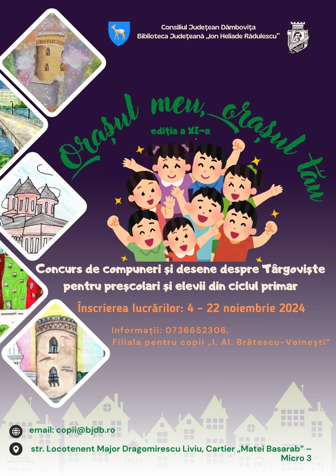 Biblioteca Judeţeană „Ion Heliade Rădulescu” Dâmbovița – Filiala pentru copii lansează concursul de desene şi eseuri cu tema „Oraşul meu, oraşul tău”, ediția a XI-a (proiect inițiat de Biblioteca Județeană „Panait Istrati” Brăila).