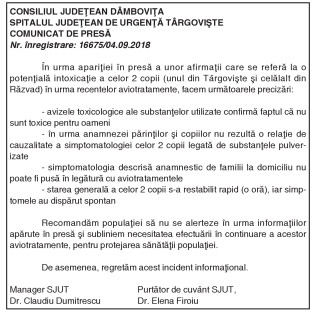 CONSILIUL JUDEŢEAN DÂMBOVIŢA SPITALUL JUDEŢEAN DE URGENŢĂ TÂRGOVIŞTE COMUNICAT DE PRESĂ Nr. înregistrare: 16675/04.09.2018 By: Ziarul Dambovita Date: 05/09/2018 FacebookTwitterPinterestWhatsApp CONSILIUL JUDEŢEAN DÂMBOVIŢA SPITALUL JUDEŢEAN DE URGENŢĂ TÂRGOVIŞTE COMUNICAT DE PRESĂ Nr. înregistrare: 16675/04.09.2018 TagsCONSILIUL JUDEŢEAN DÂMBOVIŢA SPITALUL JUDEŢEAN DE URGENŢĂ TÂRGOVIŞTE COMUNICAT DE PRESĂ Nr. înregistrare: 16675/04.09.2018 Articolul precedentPriorităţile sesiunii parlamentare pentru PMPArticolul următorPIERDERI Ziarul Dambovita LĂSAȚI UN MESAJ Renunțați la răspuns Comentariu: Vă rugăm să introduceți comentariul dvs.! Nume:* Introduceți aici numele dvs. Email:* Ați introdus o adresă de e-mail incorectă! Vă rugăm să introduceți adresa dvs. de e-mail aici Website: Salvați numele meu, adresa de e-mail și site-ul web în acest browser pentru data viitoare i comentariu. Δ Acest site folosește Akismet pentru a reduce spamul. Află cum sunt procesate datele comentariilor tale. Popular Adrenalină și suspans la Cinema Independența din Târgoviște: „Anaconda” ajunge pe marele ecran A apărut Almanahul bisericesc 2026 al Arhiepiscopiei Târgoviștei – o oglindă a vieții pastorale și academice contemporane CJ Dâmbovița încheie o nouă ediție a programului de internship Avertisment pentru turiști: Recomandările jandarmilor montani înainte de urcarea în Bucegi Restricții de circulație în Ungaria, pe Drumul Principal 42 punct frontieră Artand-Borș, începând cu 1 ianuarie 2026! ȘtiriDâmbovița Județul Dâmbovița, sub asediul gerului – temperaturi de până la -11 grade Celsius Roxana - Ionela Botea - 02/01/2026 Dimineață geroasă – 2 ianuarie , temperaturi minime înregistrate... Vești bune pentru fermieri: începe depunerea cererilor pentru bunăstarea animalelor (DR-06) Roxana - Ionela Botea - 02/01/2026 Fermierii din sectorul zootehnic au motive de optimism la... Mani Gyenes, din nou la startul Raliului Dakar: România are reprezentant în cursa supremă a anduranței Roxana - Ionela Botea - 02/01/2026 România va fi din nou reprezentată la cel mai... Noi taxe și impozite în vigoare de la 1 ianuarie 2026 Roxana - Ionela Botea - 02/01/2026 Începând cu 1 ianuarie 2026, în România au intrat...