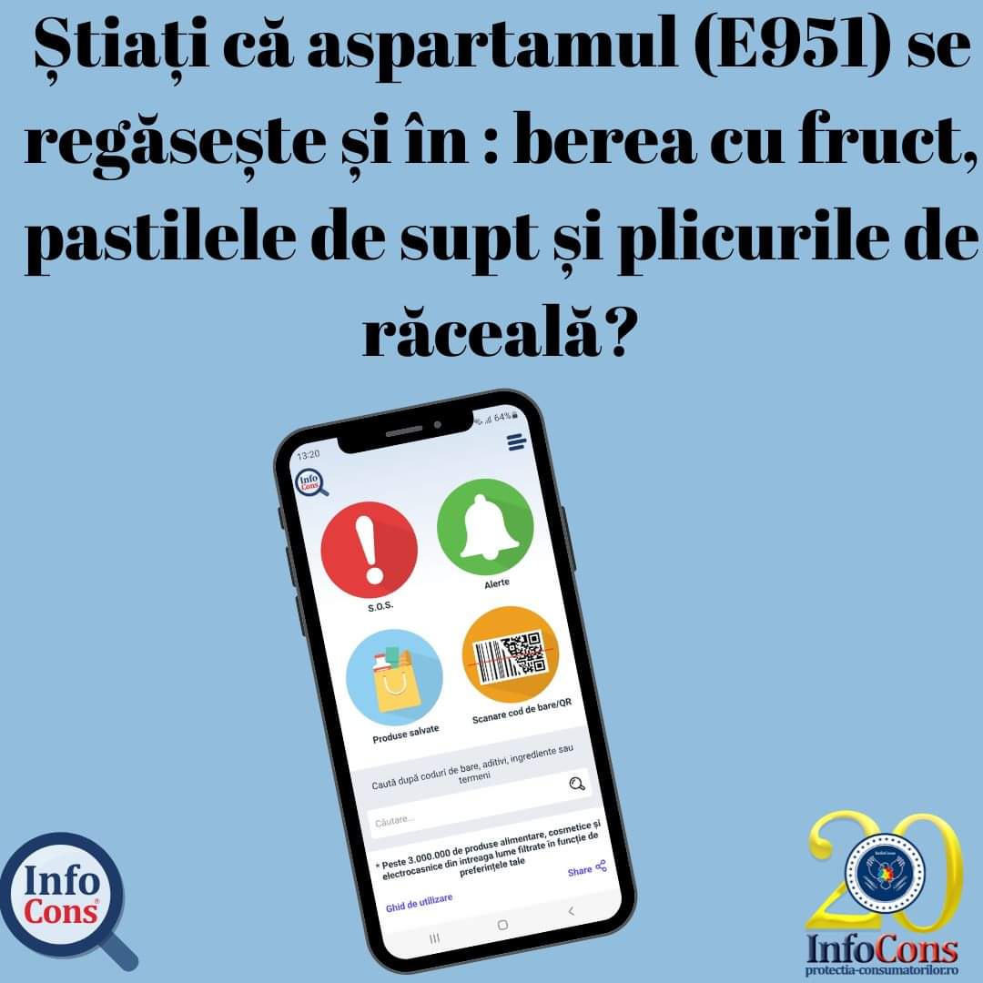 Descarca Aplicatia InfoCons, scanează codul de bare de pe etichetele produselor și afli ingredientele, aditivii alimentari cu o definiție a acestora pe un limbaj uzual, valorile nutritionale, etc.