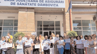 Spre nemulțumirea nedisimulată a cetățenilor veniți, unii de la distanțe apreciabile, să-și rezolve diverse probleme, greva angajaților Casei Județene de Asigurări de Sănătate Dâmbovița a fost reluată în prima zi a săptămânii. De această dată protestatarii n-au mai ieșit în fața instituției cu sediul în Bulevardul Libertății ci au anunțat continuarea grevei printr-un afiș lipit pe ușa de la intrare.