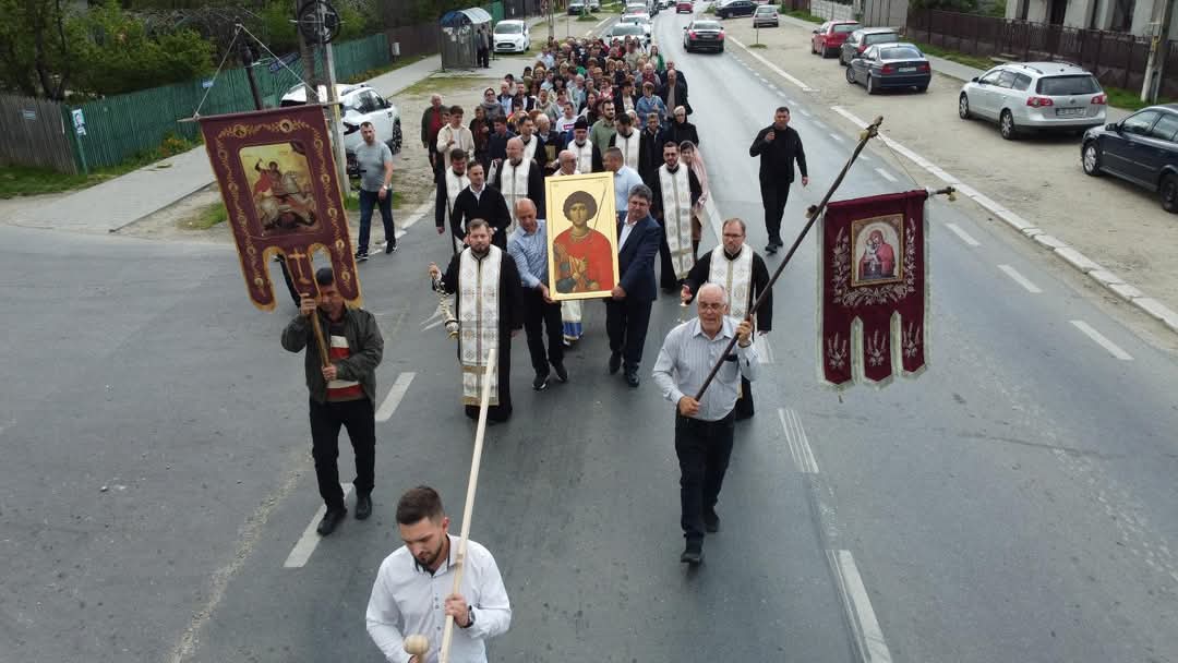 Deși vremea se anunțase instabilă, procesiunea s-a desfășurat fără incidente, sub protecția parcă nevăzută a sfântului prăznuit. Zeci de credincioși – copii, tineri și vârstnici – au participat cu inimă curată, aducând cinstire Ocrotitorului Parohiei și model de curaj și credință.
