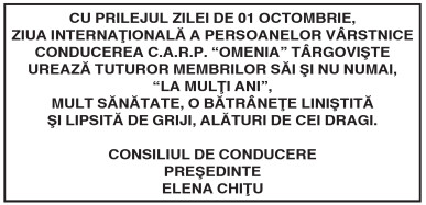 CU PRILEJUL ZILEI DE 01 OCTOMBRIE By: Ziarul Dambovita Date: 21/09/2018 FacebookTwitterPinterestWhatsApp CU PRILEJUL ZILEI DE 01 OCTOMBRIE TagsCU PRILEJUL ZILEI DE 01 OCTOMBRIE Articolul precedentInspectoratul de Stat în Construcţii – I.S.C.Articolul următorAnunţ public privind depunerea solicitării de emitere a acordului de mediu Ziarul Dambovita LĂSAȚI UN MESAJ Renunțați la răspuns Comentariu: Vă rugăm să introduceți comentariul dvs.! Nume:* Introduceți aici numele dvs. Email:* Ați introdus o adresă de e-mail incorectă! Vă rugăm să introduceți adresa dvs. de e-mail aici Website: Salvați numele meu, adresa de e-mail și site-ul web în acest browser pentru data viitoare i comentariu. Δ Acest site folosește Akismet pentru a reduce spamul. Află cum sunt procesate datele comentariilor tale. Popular Adrenalină și suspans la Cinema Independența din Târgoviște: „Anaconda” ajunge pe marele ecran A apărut Almanahul bisericesc 2026 al Arhiepiscopiei Târgoviștei – o oglindă a vieții pastorale și academice contemporane CJ Dâmbovița încheie o nouă ediție a programului de internship Avertisment pentru turiști: Recomandările jandarmilor montani înainte de urcarea în Bucegi Restricții de circulație în Ungaria, pe Drumul Principal 42 punct frontieră Artand-Borș, începând cu 1 ianuarie 2026! ȘtiriDâmbovița Județul Dâmbovița, sub asediul gerului – temperaturi de până la -11 grade Celsius Roxana - Ionela Botea - 02/01/2026 Dimineață geroasă – 2 ianuarie , temperaturi minime înregistrate... Vești bune pentru fermieri: începe depunerea cererilor pentru bunăstarea animalelor (DR-06) Roxana - Ionela Botea - 02/01/2026 Fermierii din sectorul zootehnic au motive de optimism la... Mani Gyenes, din nou la startul Raliului Dakar: România are reprezentant în cursa supremă a anduranței Roxana - Ionela Botea - 02/01/2026 România va fi din nou reprezentată la cel mai... Noi taxe și impozite în vigoare de la 1 ianuarie 2026 Roxana - Ionela Botea - 02/01/2026 Începând cu 1 ianuarie 2026, în România au intrat...