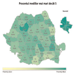 La polul opus, Județul Cluj este de departe pe primul loc, cu 87,4% din medii peste 5, urmat de Brăila, Prahova, Galați și Timiș.