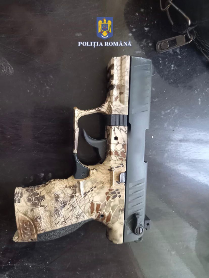 Cu ocazia efectuării percheziției, au fost descoperite și ridicate două arme neletale supuse autorizării, un detector de metal și un cartuș cu glonț, letal, cu capsa nepercutată.
