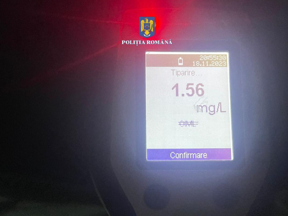 În urma testării conducătorului auto cu aparatul etilotest, a fost indicat un rezultat cu o valoare de 1,56 mg/l alcool pur în aerul expirat, bărbatul fiind condus la spital pentru recoltarea de probe biologice.