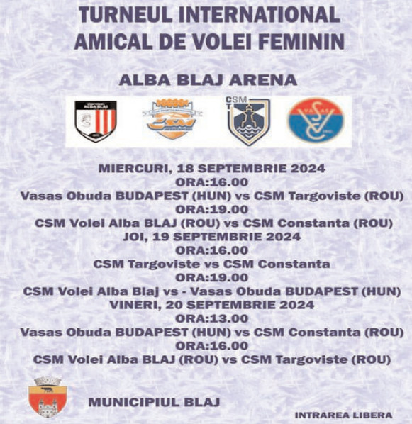 Evenimentul se va desfășura între 18 și 20 Septembrie, iar fetele noastre vor avea parte de meciuri amicale împotriva unor adversari de calibru, în cadrul competiției găzduite de noua sală „Alba Blaj Arena”.