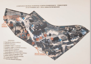 Miercuri 25 octombrie- Ziua Armatei Române, începând cu ora 10.00, la Curtea Domnească se va desfășura un ceremonial militar public, cu participarea autorităților publice, militarilor din Garnizoana Târgoviște, asociațiilor afiliate Ministerului Apărării Naționale, Fanfarei Militare și altor personalități publice. În intervalul orar 09.00-15.00 va fi deschisă expoziția de tehnică militară și atelierele interactive de supraviețuire, aruncare a grenadelor de exercițiu și simulatorul de tragere cu armamentul de infanterie, destinate tuturor participanților și în mod expres copiilor.