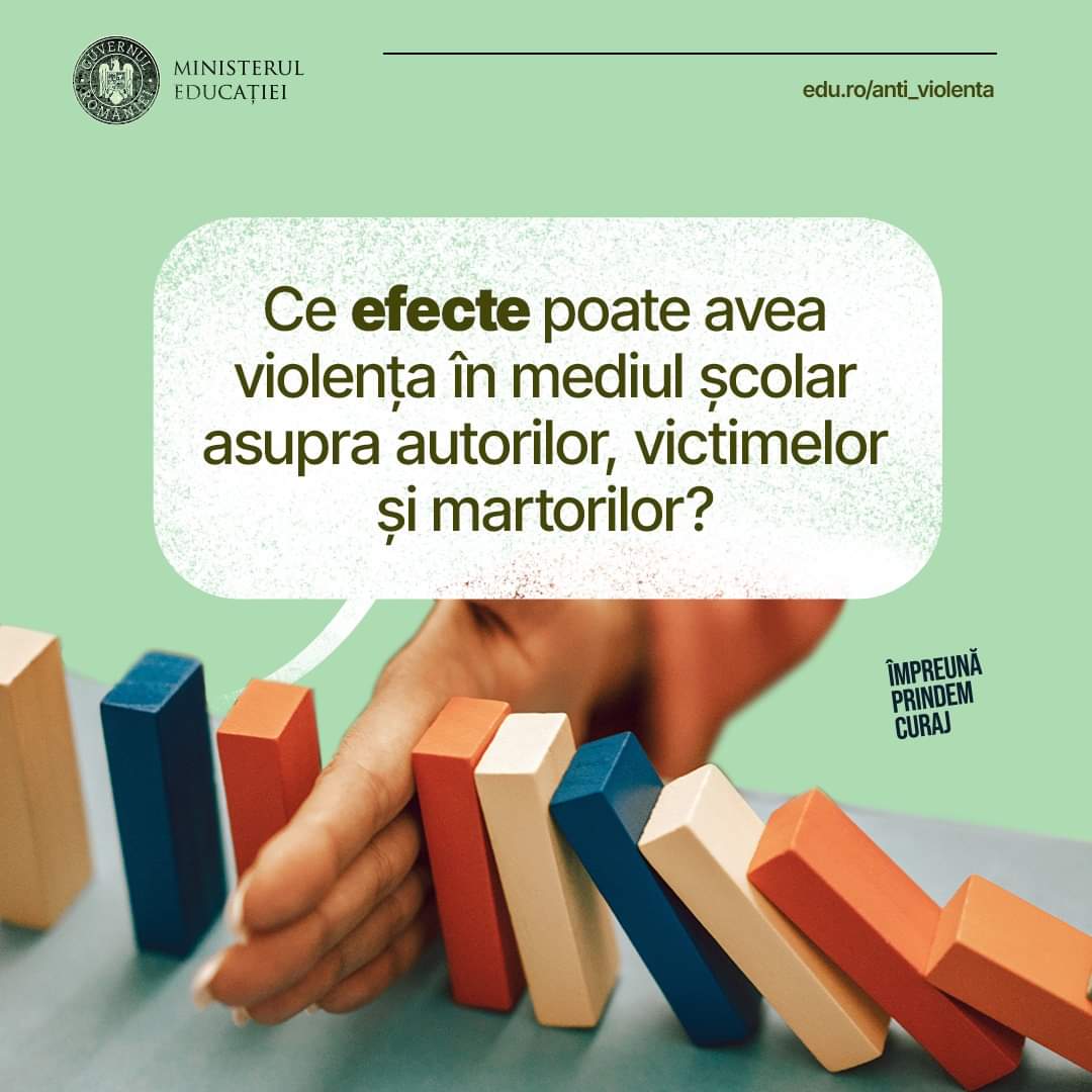 Enumerăm câteva dintre aceste efecte: victimele violenței pot suferi traume fizice și/sau traume emoționale; pe termen lung, violența poate afecta sănătatea mintală a victimelor, acestea pot dezvolta anxietate, depresie, tulburări de alimentație; victimele violenței pot avea dificultăți în a-și recâștiga încrederea în sine și în ceilalți. Acest lucru poate afecta relațiile personale, inclusiv cele cu membrii familiei, prietenii sau colegii de școală.
