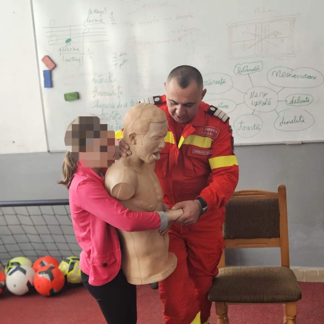 Sub îndrumarea unui instructor de formare de la Centrul de Formare și Pregătire în Descarcerare și Asistență Medicală de Urgență, aparținând Inspectoratului pentru Situaţii de Urgenţă „Basarab I” al județului Dâmbovița, și a unei voluntare entuziaste în programul Salvatori din Pasiune, participanții au învățat despre acordarea primului ajutor în situații critice. Printre subiectele abordate s-au numărat acordarea primului ajutor în caz de obstrucție a căilor aeriene, tehnicile de resuscitare cardio-pulmonară și utilizarea defibrilatoarelor semiautomate externe. De asemenea, s-a pus un accent deosebit pe procesul de apelare a numărului unic de urgență 112, un aspect crucial în gestionarea situațiilor de urgență.