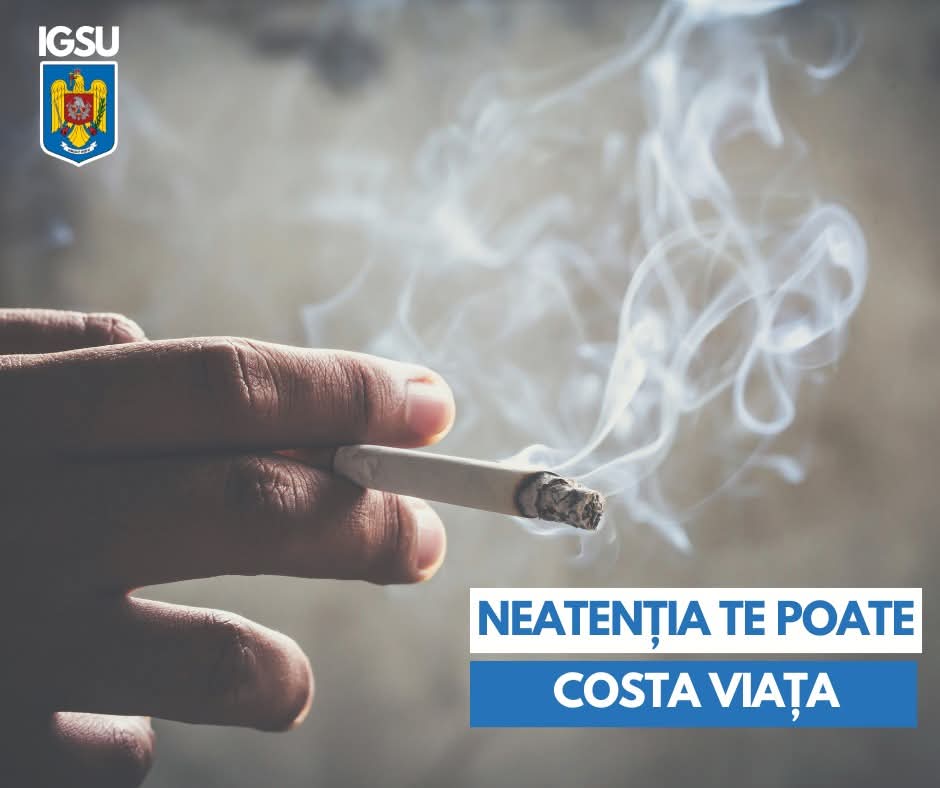 Una dintre cele mai frecvente cauze ale incendiilor domestice este fumatul neglijent, avertizează specialiștii Inspectoratului pentru Situații de Urgență ISU Dâmbovița. Țigările aprinse, scrumierele răsturnate sau fumatul în pat pot declanșa, în doar câteva secunde, un incendiu cu consecințe grave.