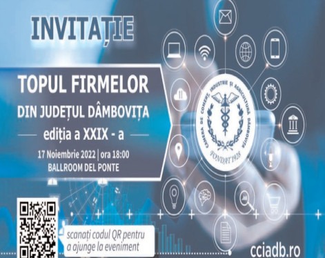 Ca în fiecare an, Camera de Comerț Dâmbovița celebrează performanțele mediului de afaceri, în cadrul 𝗚𝗮𝗹𝗲𝗶 𝗧𝗼𝗽𝘂𝗹 𝗙𝗶𝗿𝗺𝗲𝗹𝗼𝗿 𝗱𝗶𝗻 𝗗𝗮̂𝗺𝗯𝗼𝘃𝗶𝘁̦𝗮, 𝗲𝗱𝗶𝘁̦𝗶𝗮 𝗮  𝗫𝗫𝐈𝐗– 𝗮.