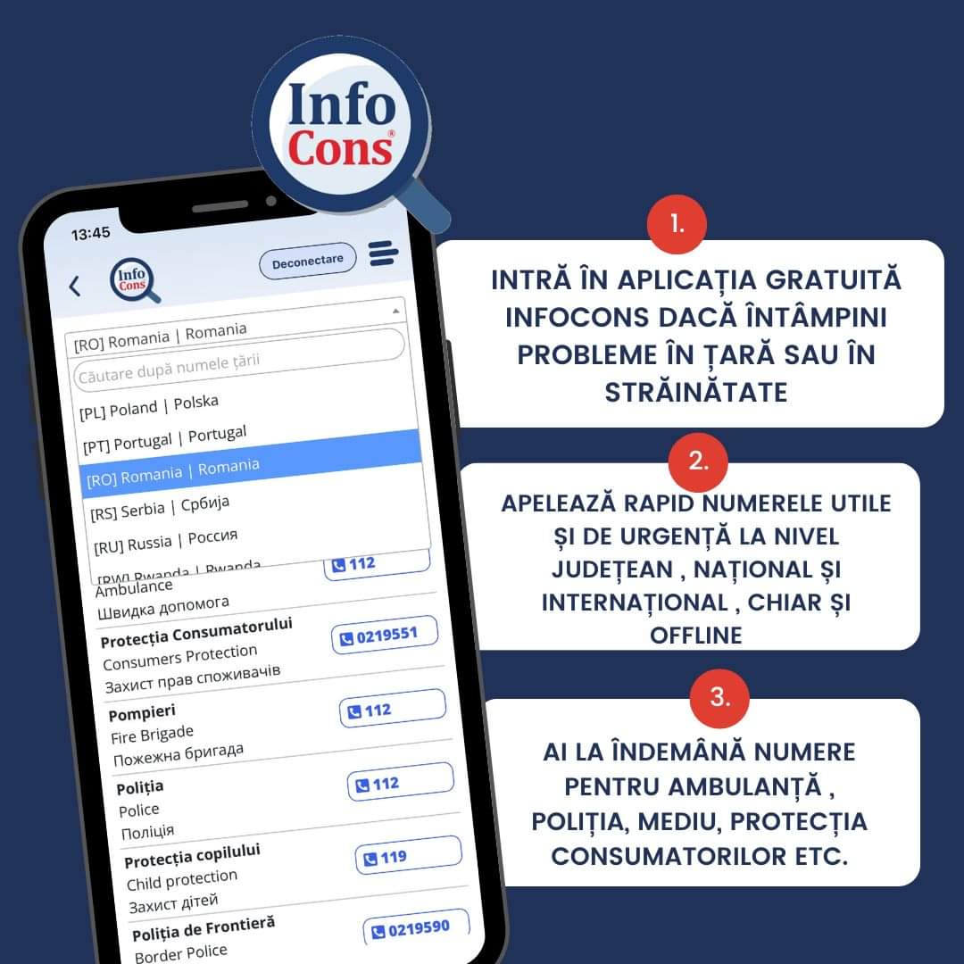 Aplicația GRATUITĂ InfoCons este disponibilă în 33 de limbi și vine în sprijinul consumatorilor cu informații utile, corecte, transparente și pe înțelesul tuturor!